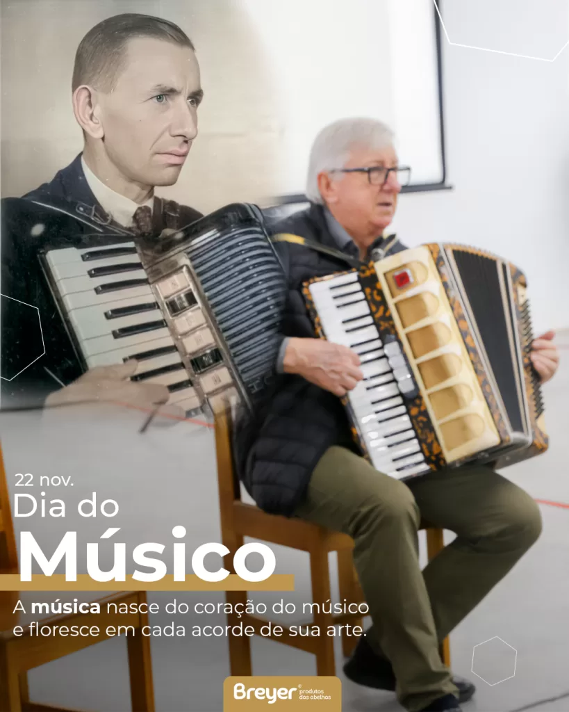 🎶🐝 A música e as abelhas fazem parte da trajetória que construiu a história da Breyer. Quando nosso fundador chegou da Alemanha, trouxe consigo dois grandes pilares que moldariam o futuro da empresa: o amor pelas abelhas e a paixão pela música.Esses valores atravessaram gerações e permanecem presentes em nossa cultura, inspirando dedicação, ritmo, sensibilidade e propósito. Hoje, no Dia do Músico, celebramos a arte que emociona e reconhecemos a importância desse legado que conecta tradição, memória e trabalho com significado. Que a música continue nos guiando — assim como o zumbido das abelhas segue guiando o nosso compromisso com qualidade e autenticidade. 🎵✨ #DiaDoMúsico #CulturaBreyer #Legado #Tradição #HistóriaBreyer #ProdutosDasAbelhas #Propósito